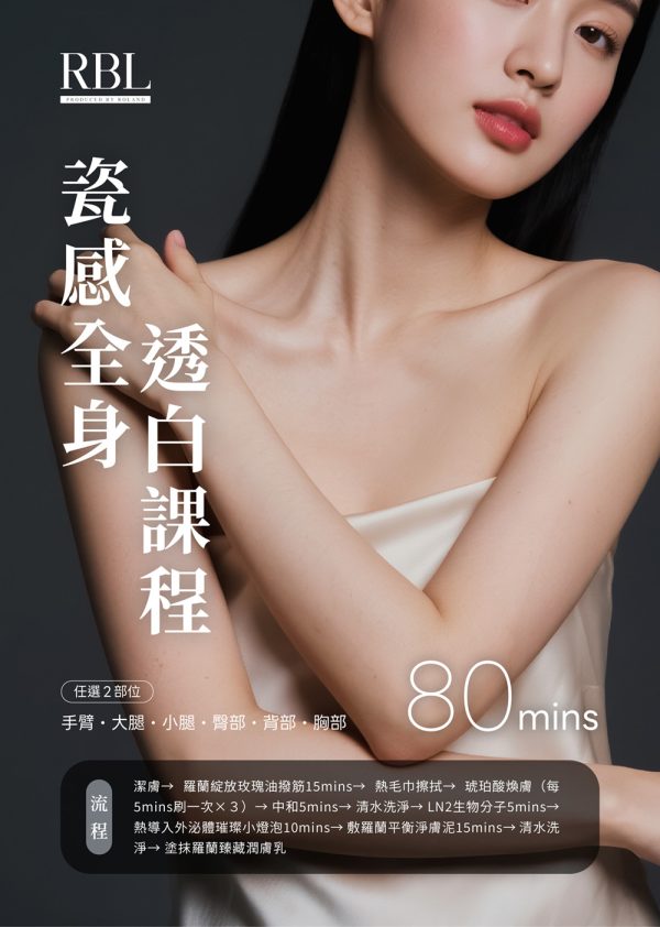 潔膚 → 羅蘭綻玫瑰油撥筋15mins → 熱毛巾擦拭 → 琥珀酸渙膚(每5mins刷一次X3) → 中和5mins → 清水洗淨 → LN2生物分子5mins → 熱導入外泌體璀璨小燈泡10mins → 敷羅蘭平衡淨膚泥15mins → 清水洗淨→ 塗抹羅蘭臻藏潤膚乳
